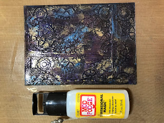 Around where my photo is going to be I have embossed the larger flower in the Venus Violet Blue embossing powder - I didnt want the entire flower - more mark making