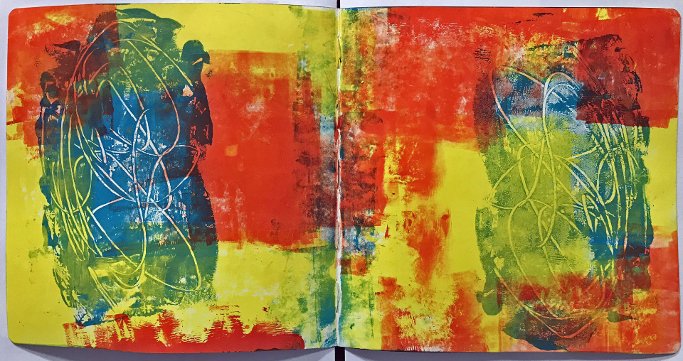 Once dry, I have used black gesso with a brayer over the entire card