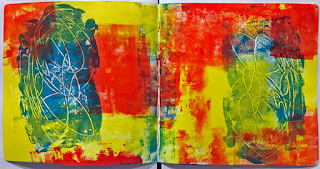 For this I began the same was as the ATC's - I applied 3d Gloss gel through a stencil (two) and once dried I completed covered with black gesso