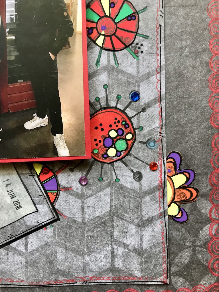 I have create a layout where I have framed the photo with flowers and the outside of the page with hand drawn lines.