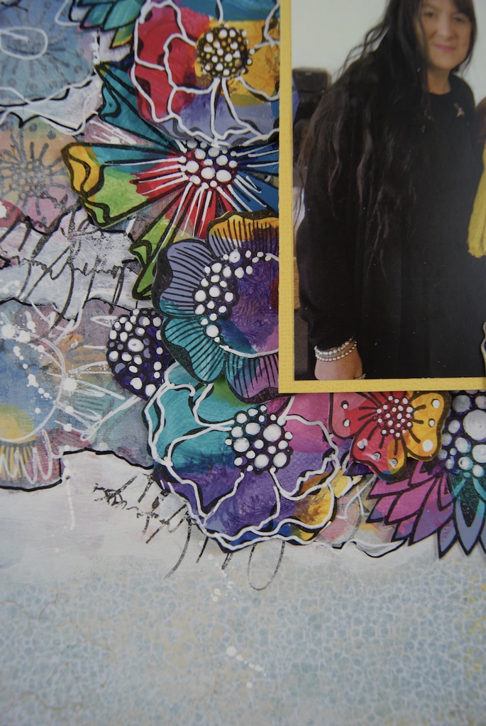 In the background I have pushed the flowers to the back using white paint over the top, and with the flowers on top I have highlighted them using a white paint pen - Black and white are amazing colours as they can do the reverse depending on how you use them which is shown in this layout.