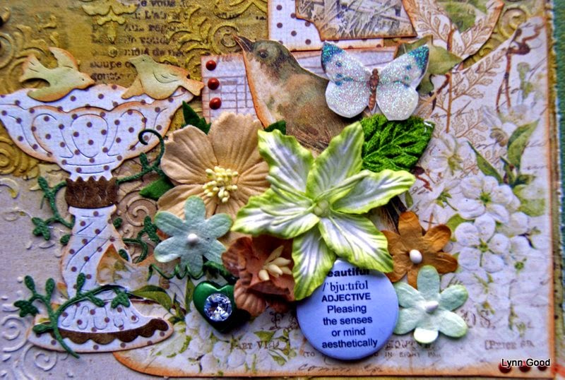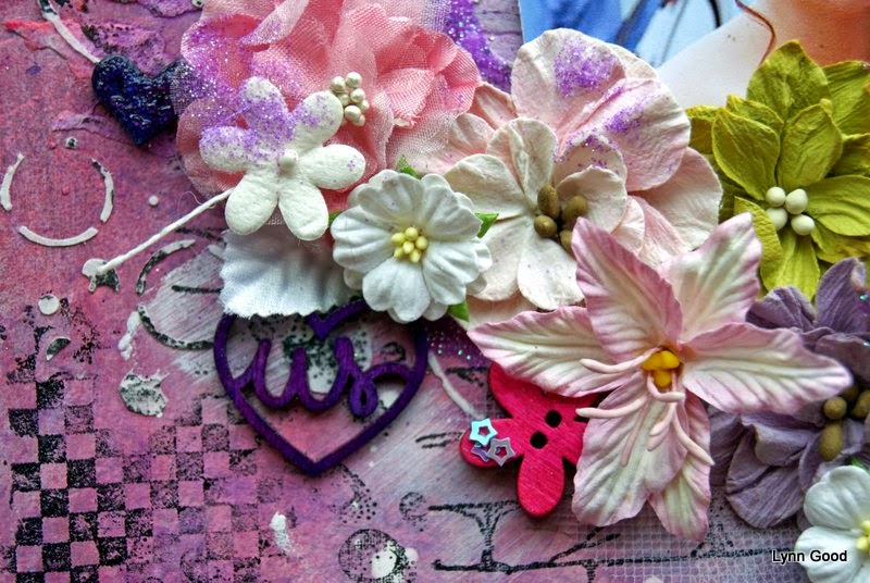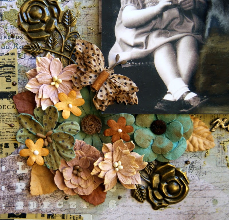 Loving the prima products in this layout! Here are prima flowers and a prima resin - I have painted the resin with Inklingz watercolour paints.