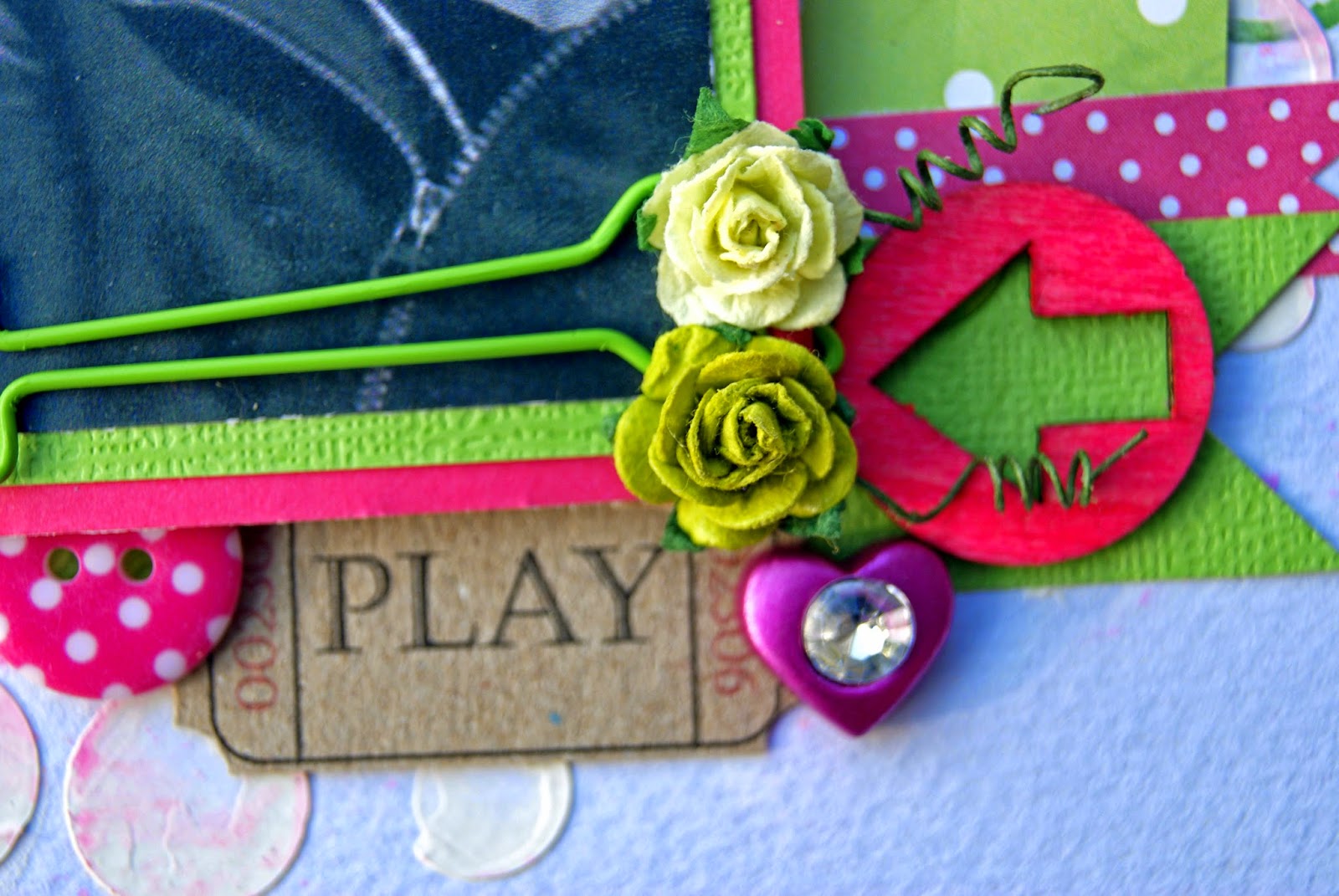 In this layout I created the background with a Brick Stencil and Watercoloured pencils. The background paper is from Studio 75. I also used Inklingz - Penny for your Thoughts to colour the chipboard that I used from the store - "memories" and heart shapes . I used an assortment of flowers - a White Flower Vine, Fabric Flowers, and Paper Flowers. Just love the Key that is available with a choice of words, the flairs. Cabochons, and tiny mini roses. I also used the Paper Clip arrow and the date from the Journal It Packs.