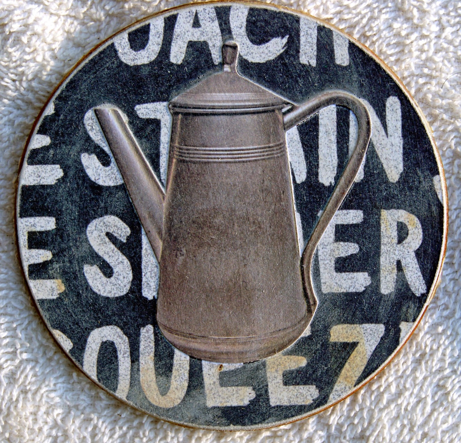 I purchased the placemats and coasters from Spotlight and coloured the edged and front with Tim Holtz Distress Ink "Vintage Photo" I then used the papers from the Ruby Rock-It collection to create the mats. I used a gloss sealer on the top to protect them so they can actually be used.