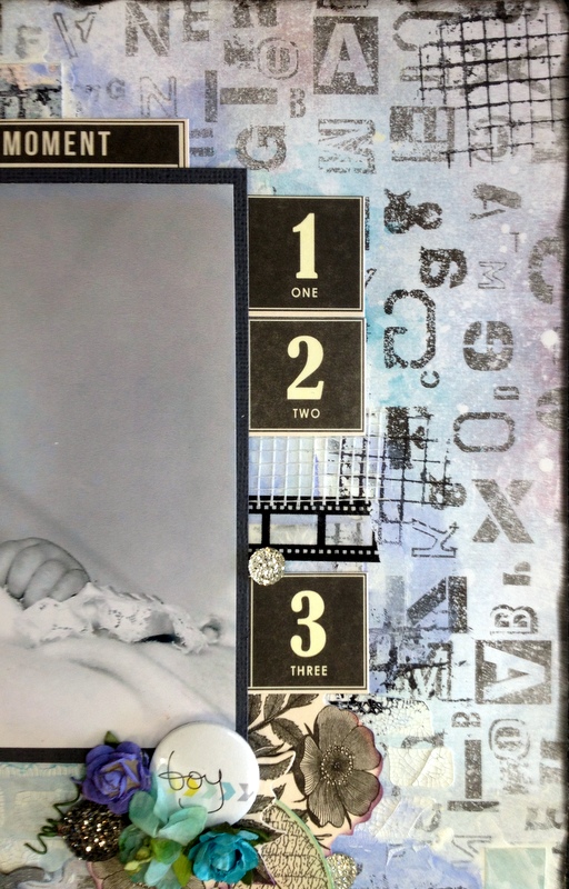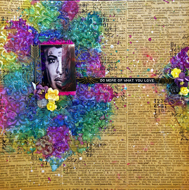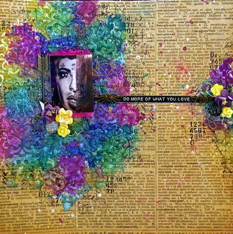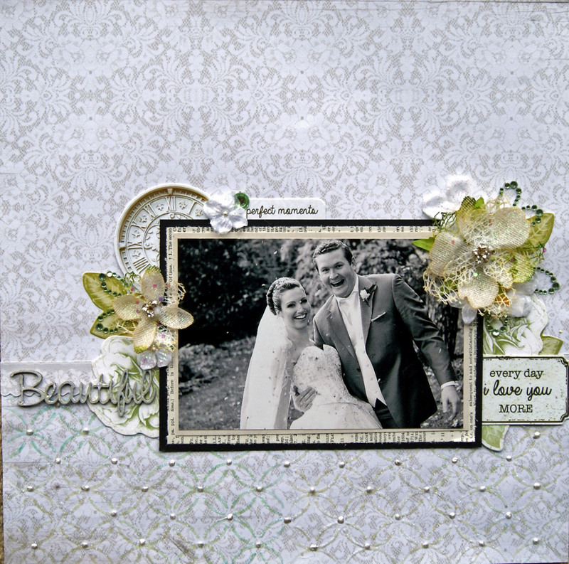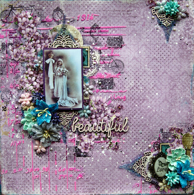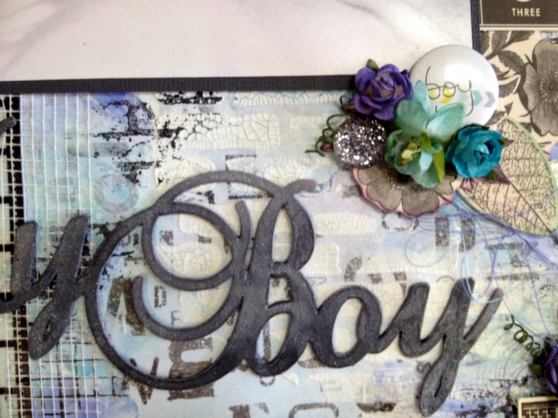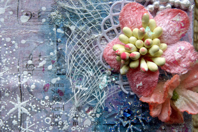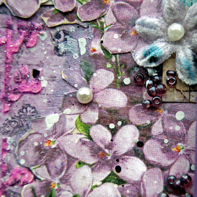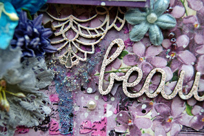 I have used the new Kaisercraft Provincial Collection - Hydrangea paper. On the lower third I have use 3D Gell through a prima stencil and then sprinkled Art Basics Glitter.
