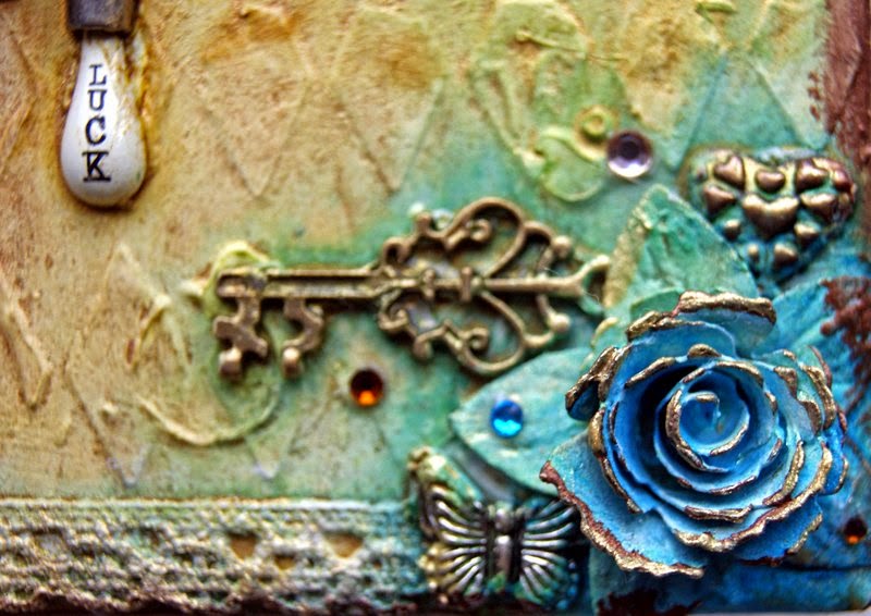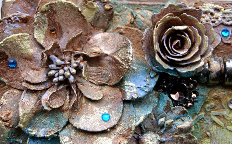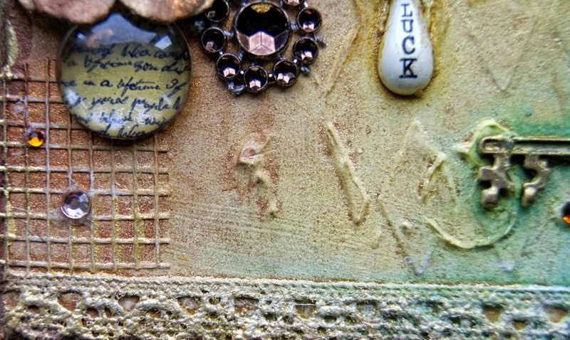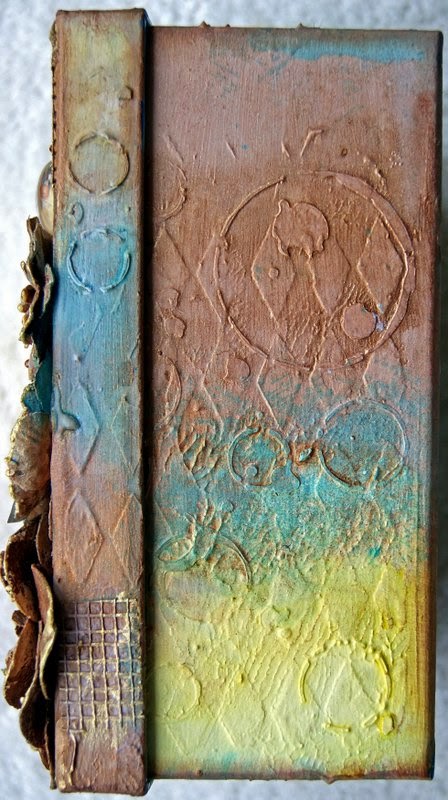 The WOW chipboard has been painted with Gold Gelatos and edged with Tim Holtz Distress Ink - Aged Mahoganny