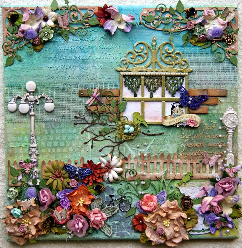 I have also managed to create the layout using the Tic Tac Toe board - Flowers, Spray/paint & chipboard.