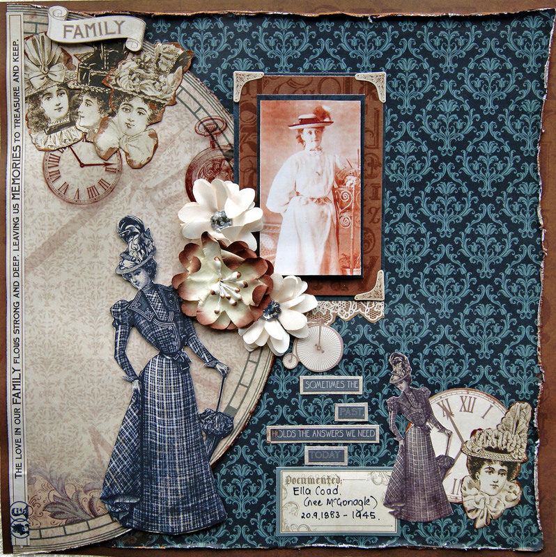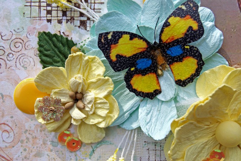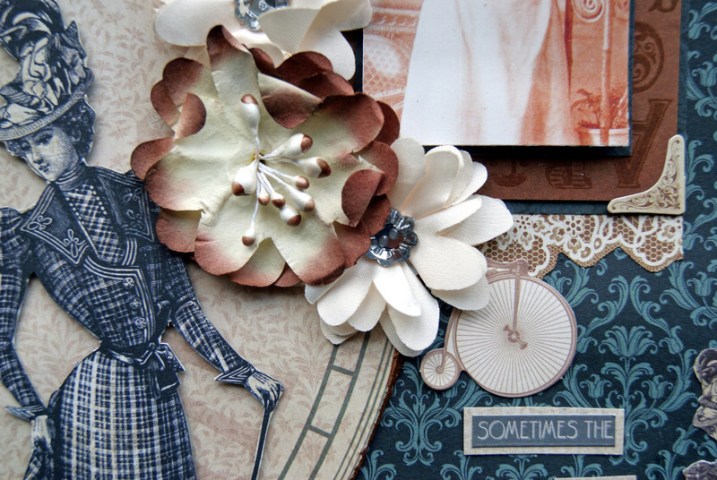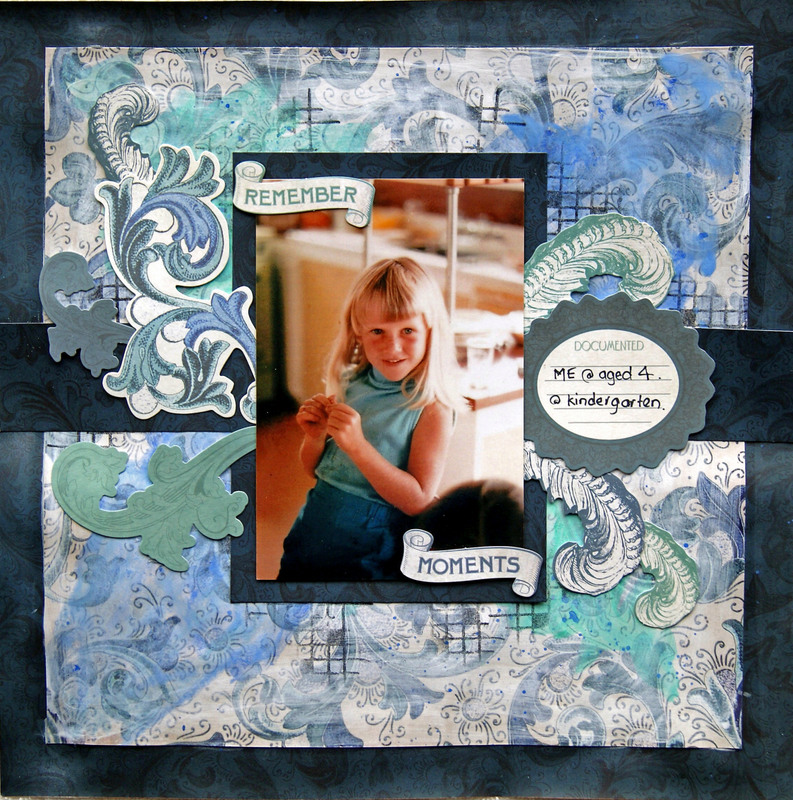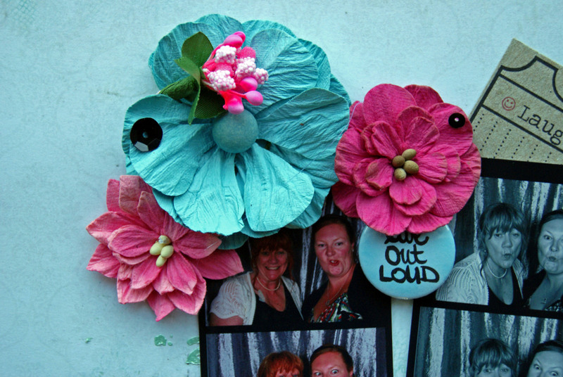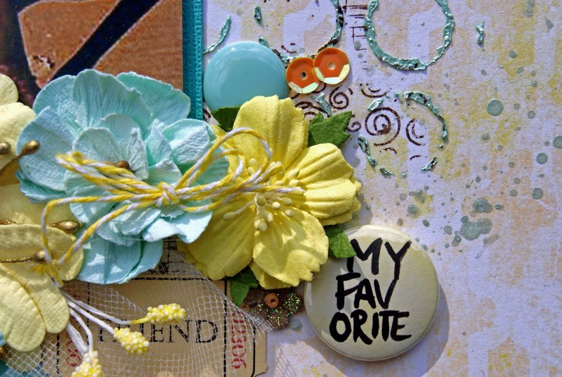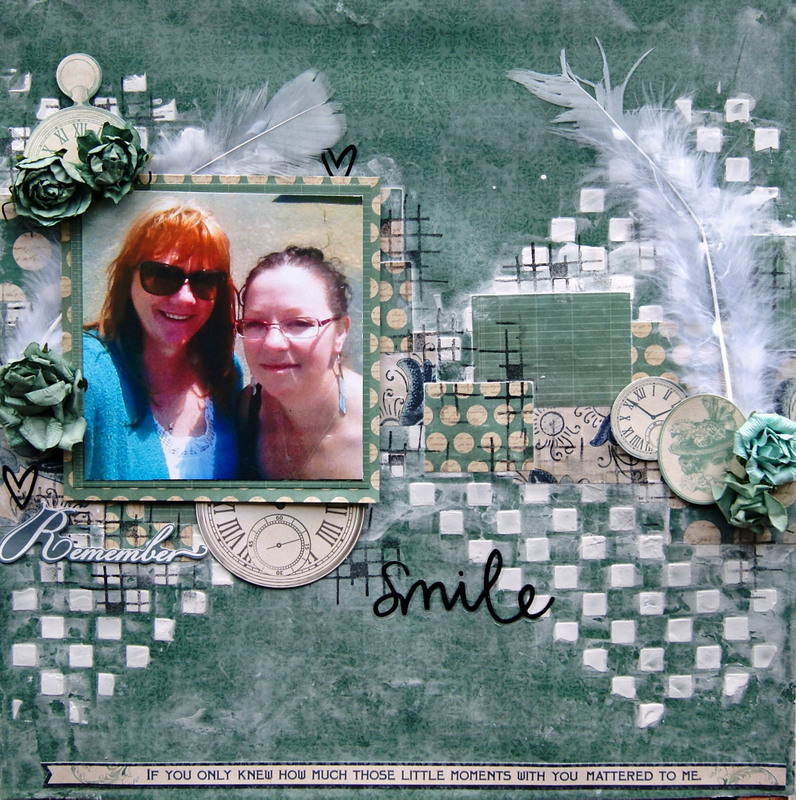 The chipboard and title have been painted with Tim Holtz Paints and embossed using crystal glitter embossing powder.