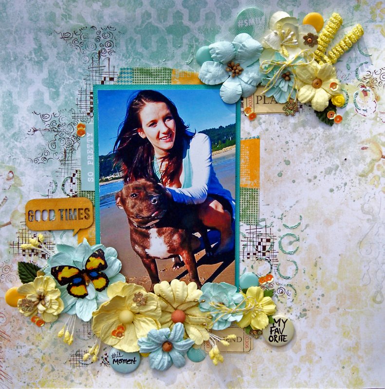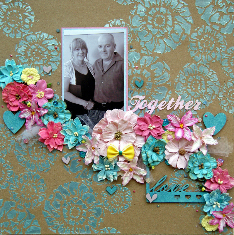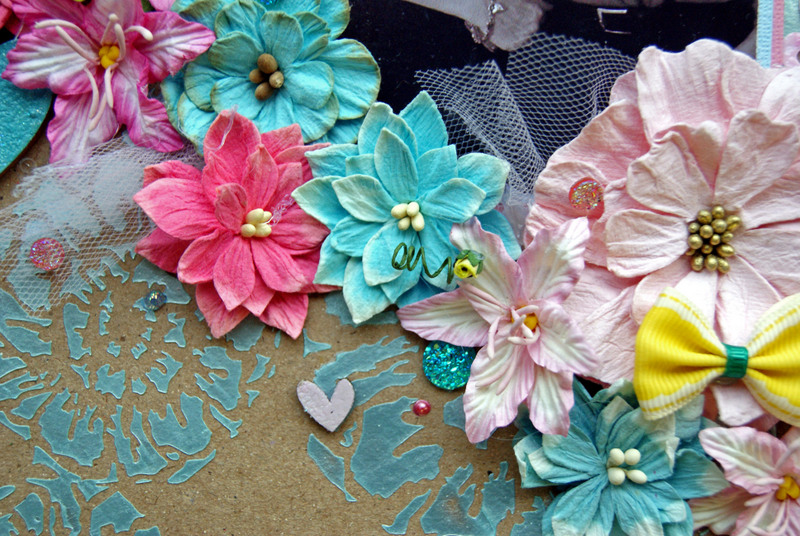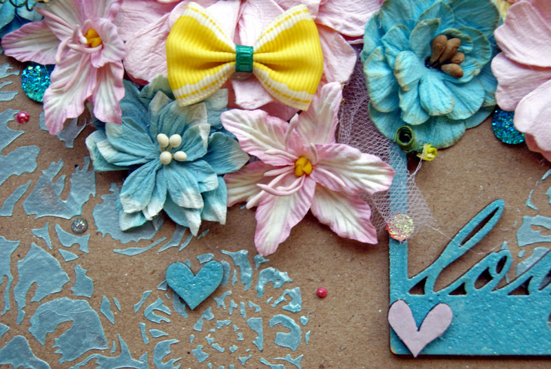I have used a stencil from the Flying Unicorn February kit and I love it. I have used Viva Modelling Creme - Lightblue. All the embellishments are from the D-lish Scraps shop which you can find here