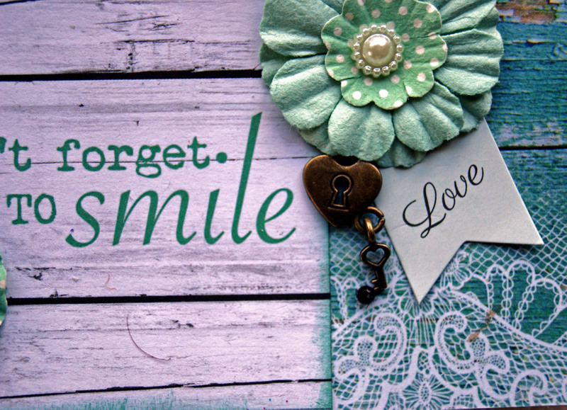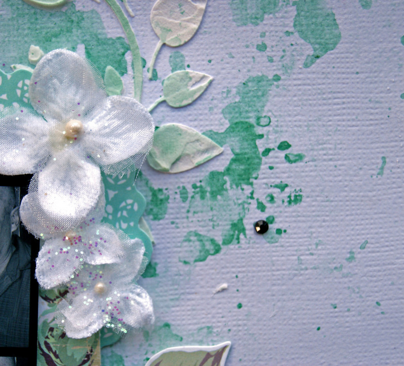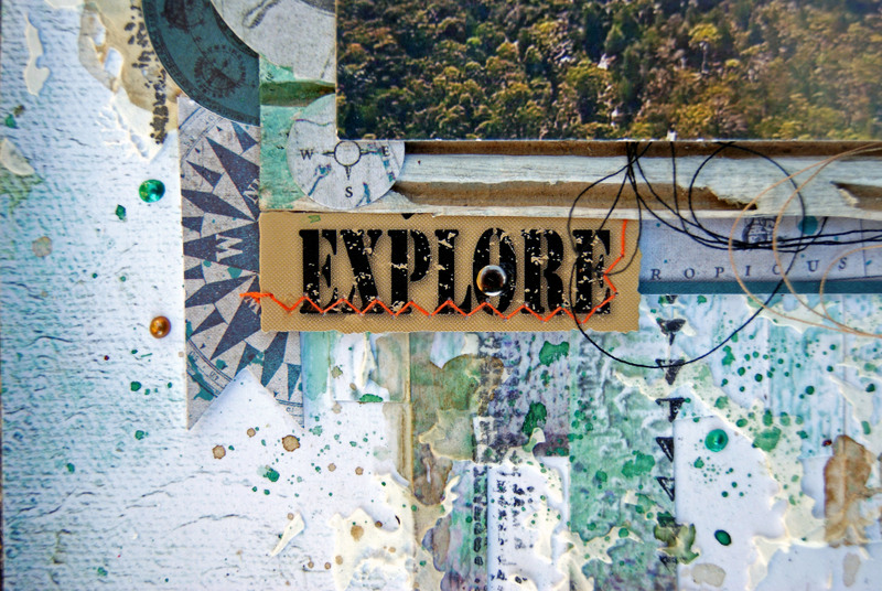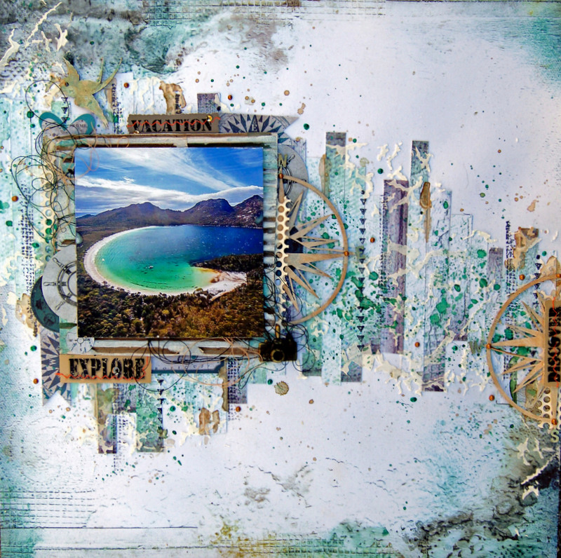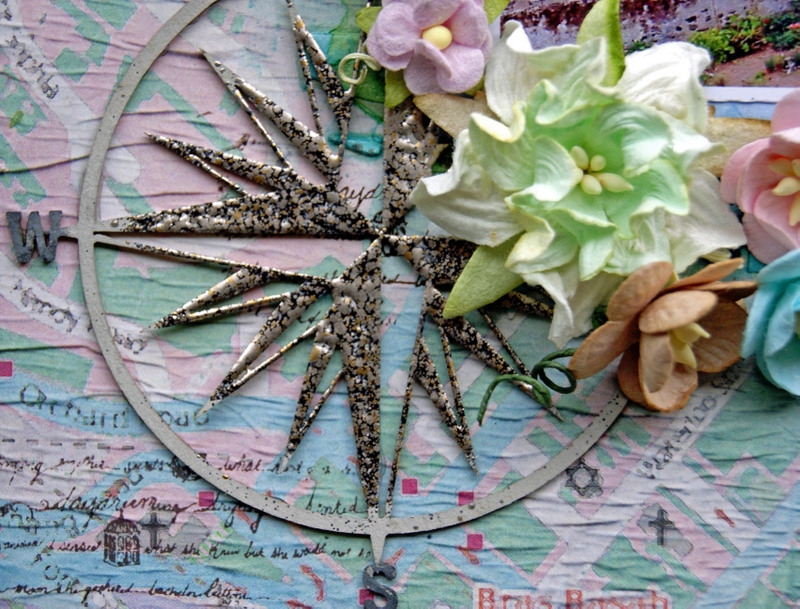 I have used white card stock as the background paper, and Kaisercraft Blue Bay Collection for the paper at the top and bottom as well as the collectables.