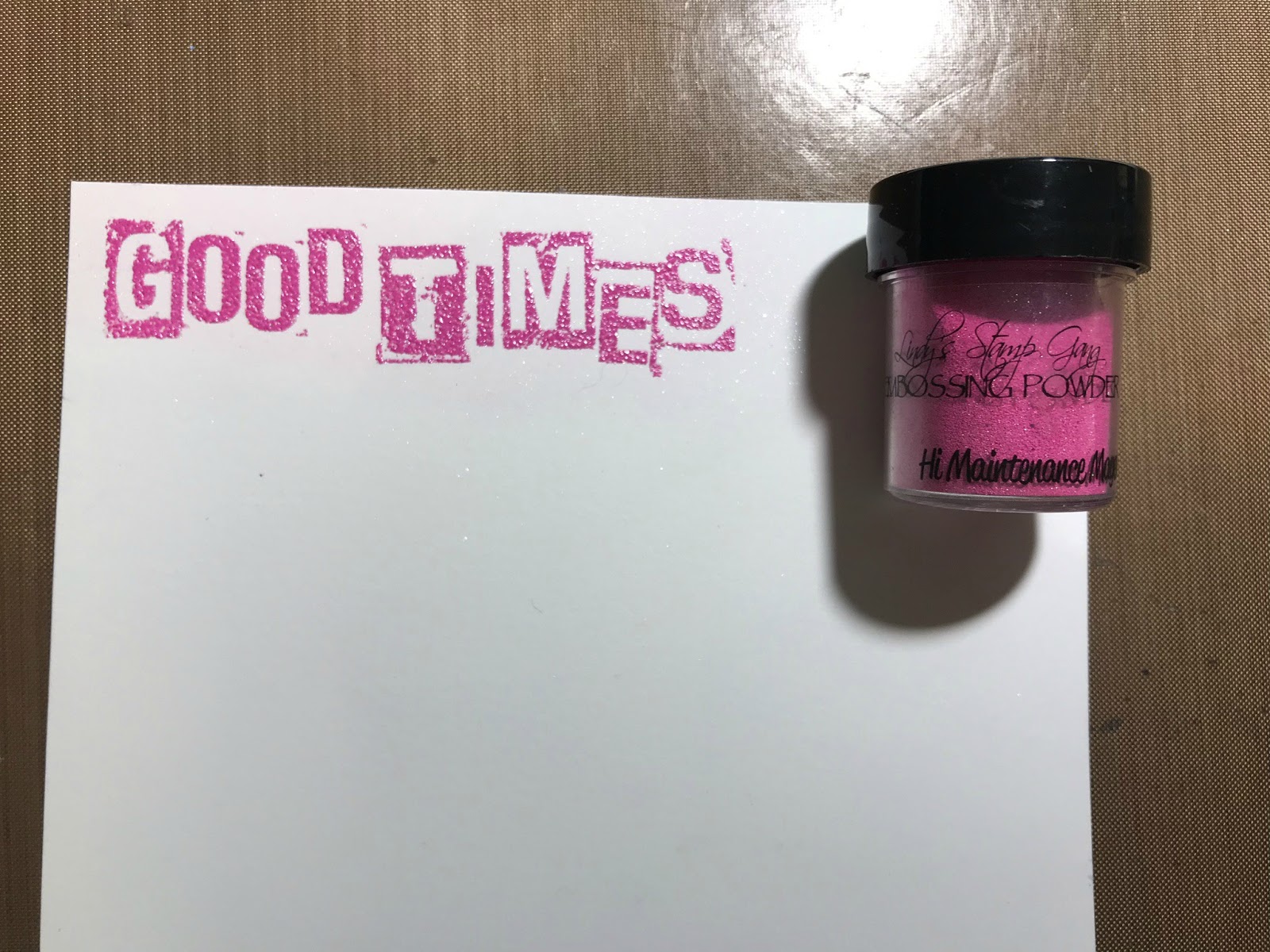 I have stamped the saying Good Times from the No Regrets Stamp collection and embossed with Lindy Stamp Gang Embossing powder. I didnt want straight edges so I have cut around the letters and placed onto my layout.